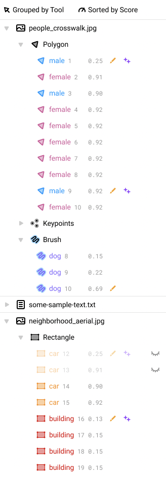 Group by Label and Group by Tool options does not work for multiple image scenario or multiple labeled type scenario; only the Group Manually option is available for this mode.